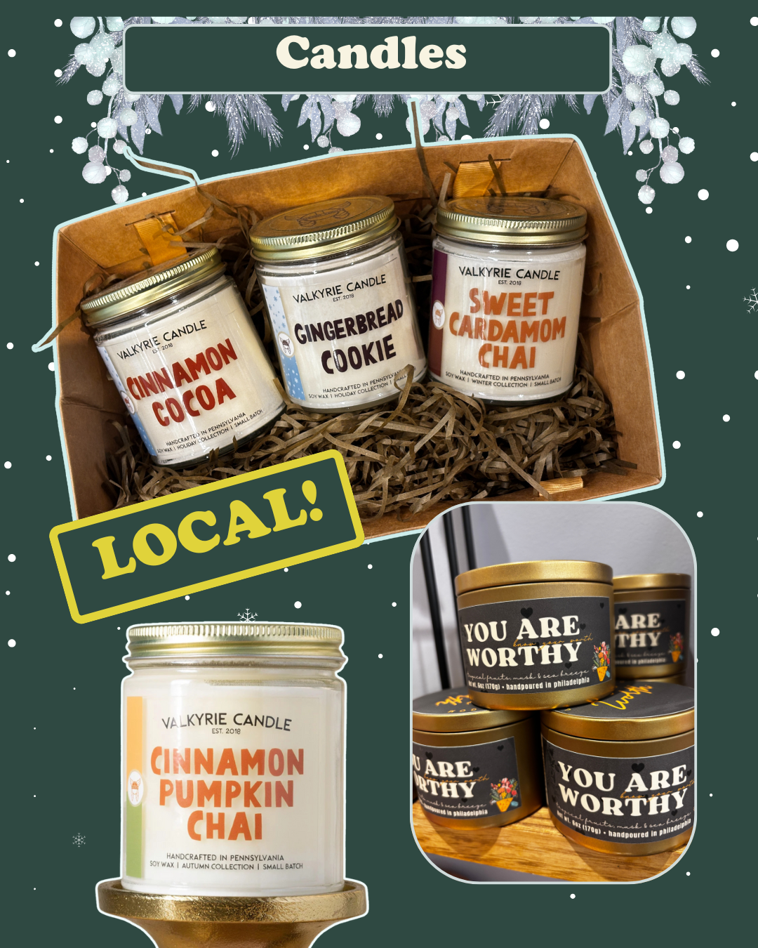 - LOCAL candles from Valkyrie Candle & 4 Wicks Candle Co