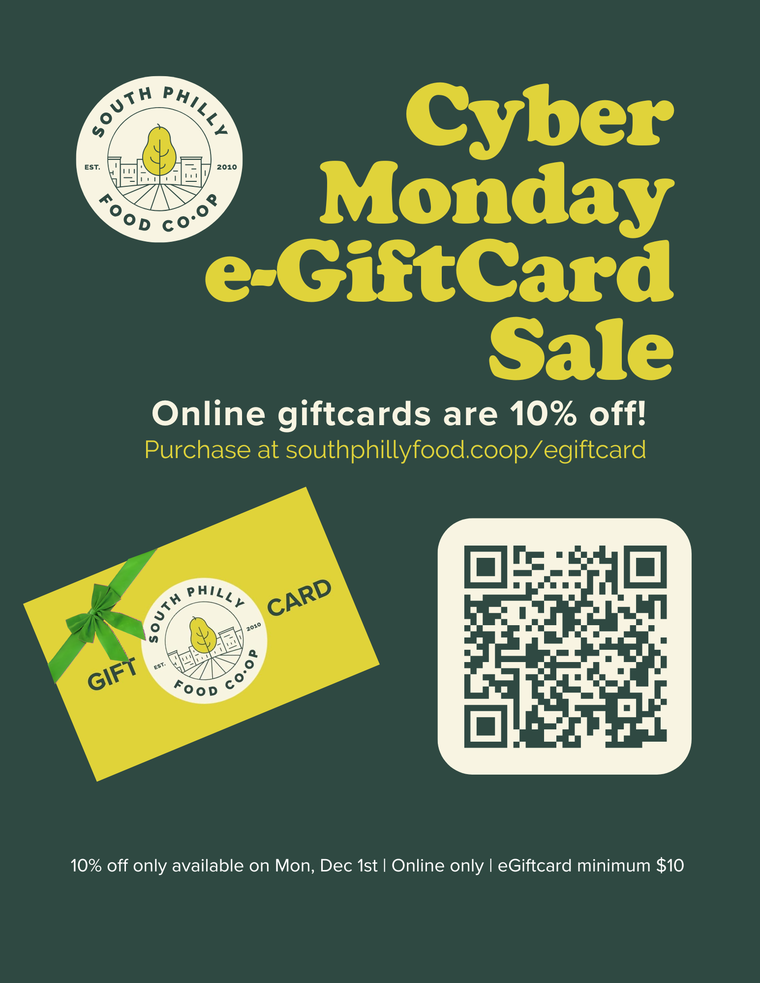- Don't Forget about our Online Cyber Monday Gift Card Sale!